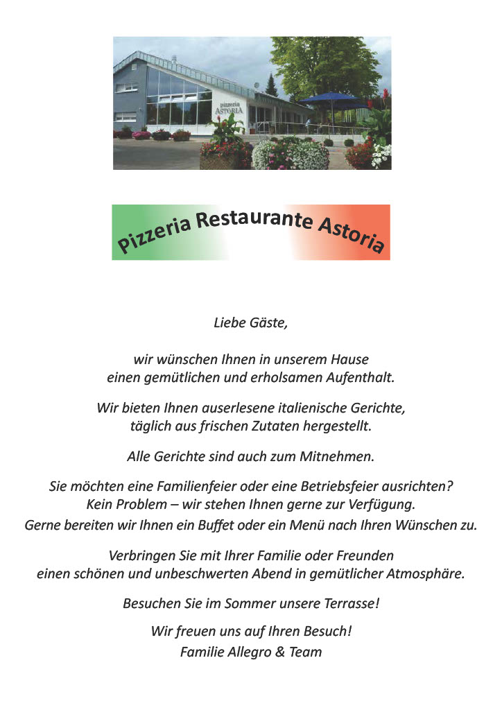 Bei Pizzeria Astoria dreht sich alles um Qualität und Hingabe. Unsere Mission ist es, unseren Kunden die besten italienischen Spezialitäten zu bieten. Wir stehen für Tradition, Frische und köstliche Geschmackserlebnisse, die unsere Gäste immer wieder begeistern.